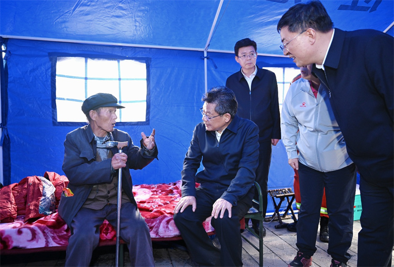 在文峰鎮樺林村,任振鶴深入震中,實地察看房屋、道路等受損情況,來到安置點看望受災群眾,隨后在臨時指揮部主持召開會議,與省軍區、省直相關部門及定西市、隴西縣、文峰鎮等負責同志進行會商研判,安排部署下一步工作。他指出,地震發生后,各級各相關部門聞“震”而動、行動迅速,第一時間開展抗震救援、排險除險工作,奠定了重要基礎。要堅持“省級指導、市縣統籌、各方支持、群眾參與”,強化統一調度,落實責任、整合資源,以科學有效的指揮、周密完備的部署,繼續做好抗震救災各項工作。要全面排查風險隱患,加強余震監測預警,聚焦農房、學校、養老院、衛生院、水庫、道路、工礦、橋涵、地質災害點等可能受地震影響的重點部位,不漏一戶、不落一處,早發現、早處置,有安全風險的及時轉移,嚴防發生次生災害。要妥善安置受災群眾,按照“五有”要求保障好群眾基本生活,讓受災群眾感到踏實、安穩、溫暖。要搶通保暢基礎設施,緊盯水、電、路、訊,全力做好排查搶修等工作,推動盡快恢復正常生產生活秩序。要迅速開展抗災自救,用好各方救援力量,引導動員群眾做好農房修復、廢墟清理等工作。要切實增強抗震意識,進一步完善應急預案,加強防震減災安全知識宣傳,不斷提升群眾防災減災意識,減少災害帶來的人身安全、經濟財產損失。